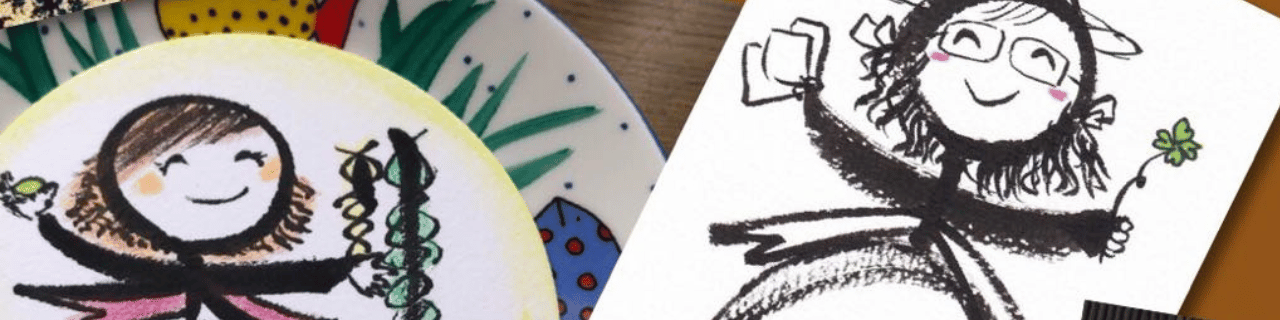 私自身が精神的に辛く、悩みから抜け出せないでいた頃、筆ペンだけで始められる書画に出会い、癒されたことをきっかけに 自分で 描くようになりました。ある時、「怒」「哀」「悩」などのネガティブな文字に表情をつけてみたら、意外にも 心を楽にする事が出来たんです。